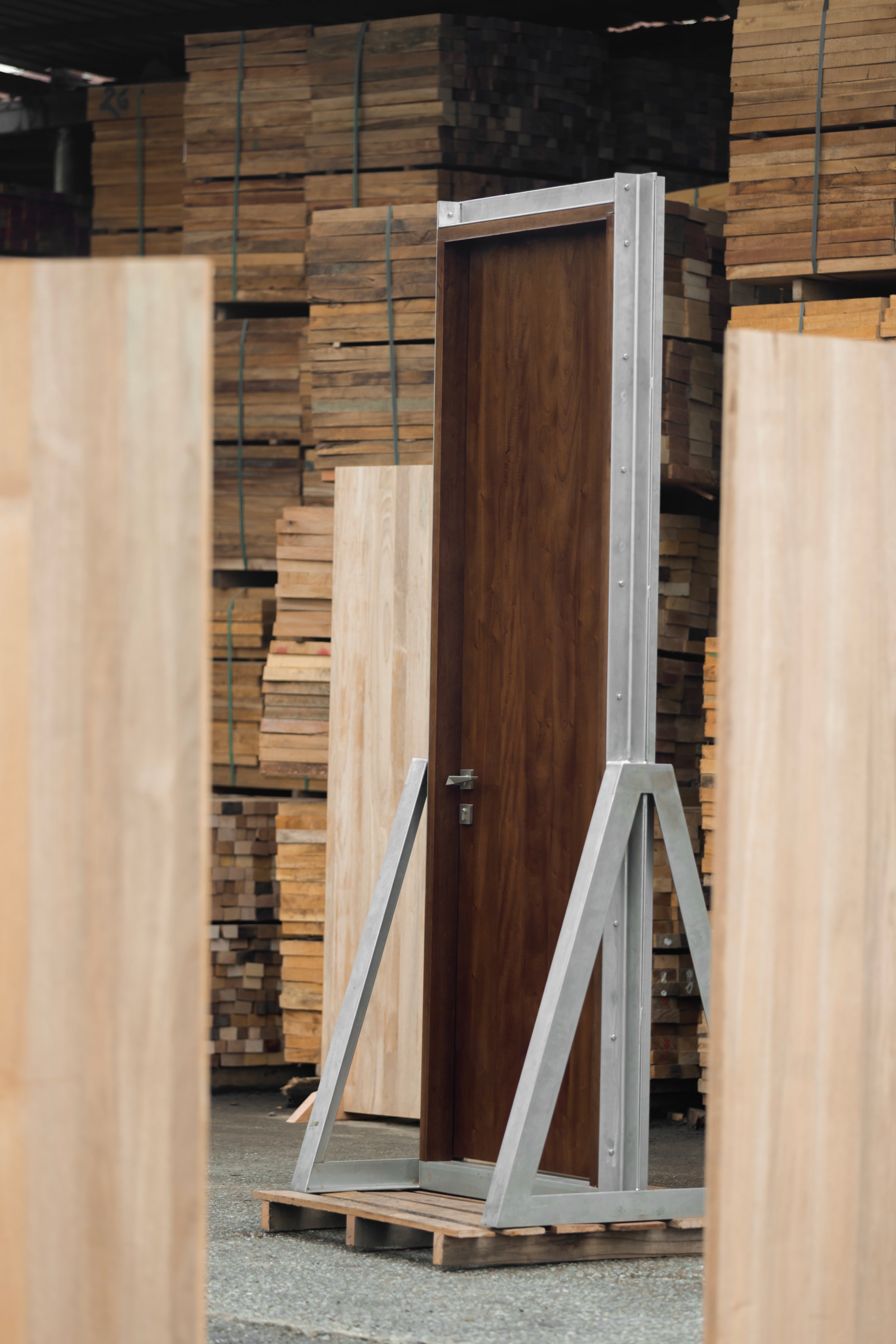 A modern solid wooden door designed for Malaysian homes. Crafted with 100% solid Meranti and constructed with a three-layer composite structure to resist warping, the Fusion Door blends durability, warmth, and minimalist design.